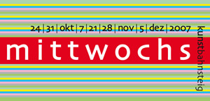 | 07.03.2007 | improvisierte musik | erste kunstbahnsteig session mit lillmeyer, müller, radtke, reiserer, rössert, schindler ... > mehr |
